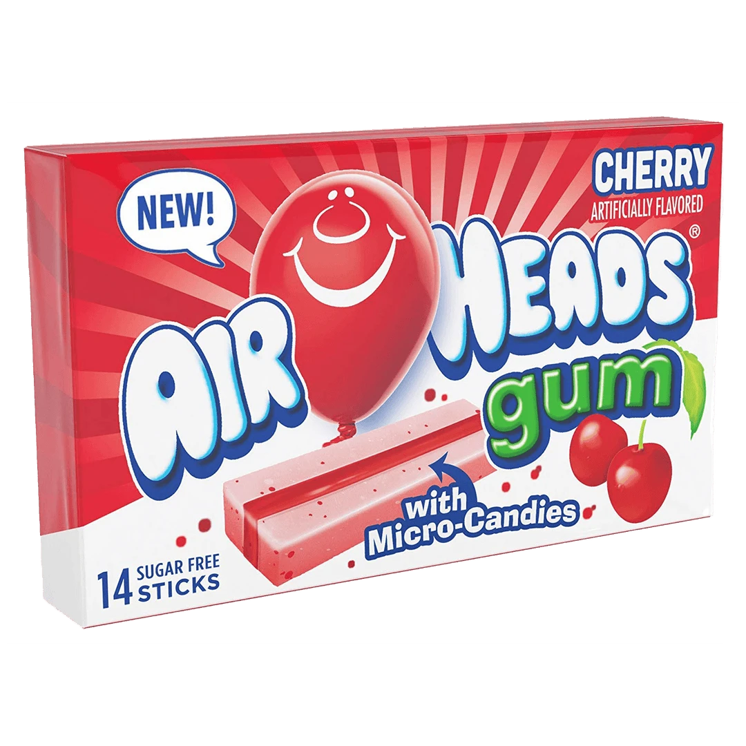 Cherry gum with micro-candies inside.