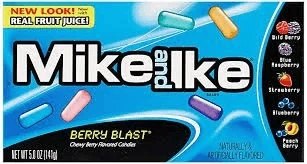 Mike and Ike Berry Blast Chewy Fruit Flavoured Candy is made with real fruit juice and bursting with flavour. It is free of gluten, fat and cholesterol. It is a delicious snack for a night at the movies or an evening at home on the couch in front of the television. This package includes a variety of unique tastes: wild berry, blue raspberry, strawberry, blueberry and peach berry.