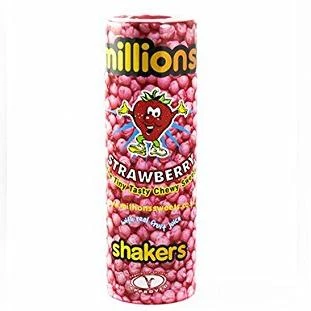 This Millions Strawberry shaker is jam-packed full of miniature strawberry-flavoured sweets with crunchy shells and chewy centres.