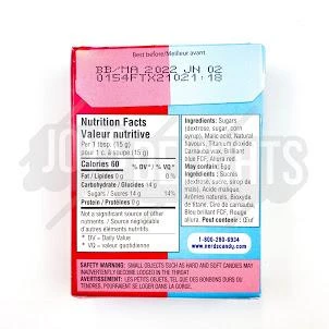 Ingredients: Dextrose, Sugar, Malic Acid, Corn Syrup, Flavours, Carnauba Wax, Colour.