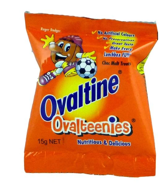 Ovalteenies are round sweets made of compressed Ovaltine. They are popular with children in Australia and the Philippines and are still sold in many canteens in schools.