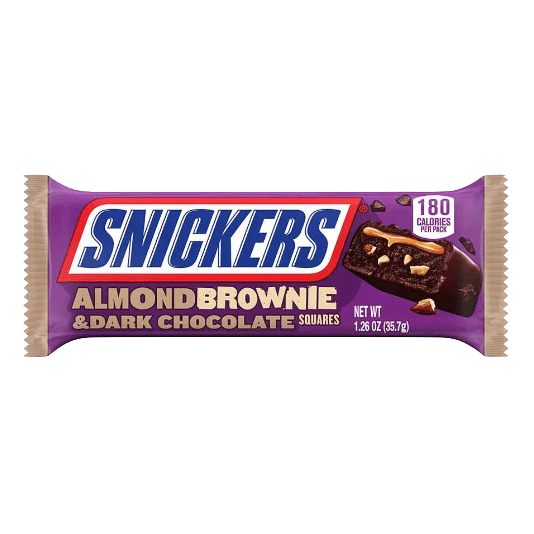 SNICKERS Dark Chocolate Almond Brownie chocolate candy bars are just the right amount of nutty brownie goodness topped with caramel and almonds – all covered in rich dark chocolate.