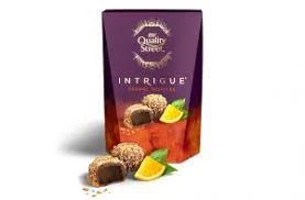 Milk chocolate truffle with orange flavoured centre covered in orange flavoured pieces.