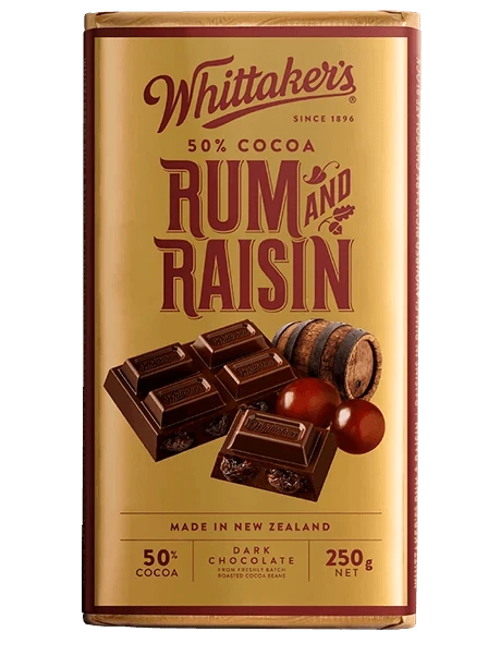 Joys Delights Lolly Shop Online Whittakers Rum & Raisin Block 250g Milk Chocolate